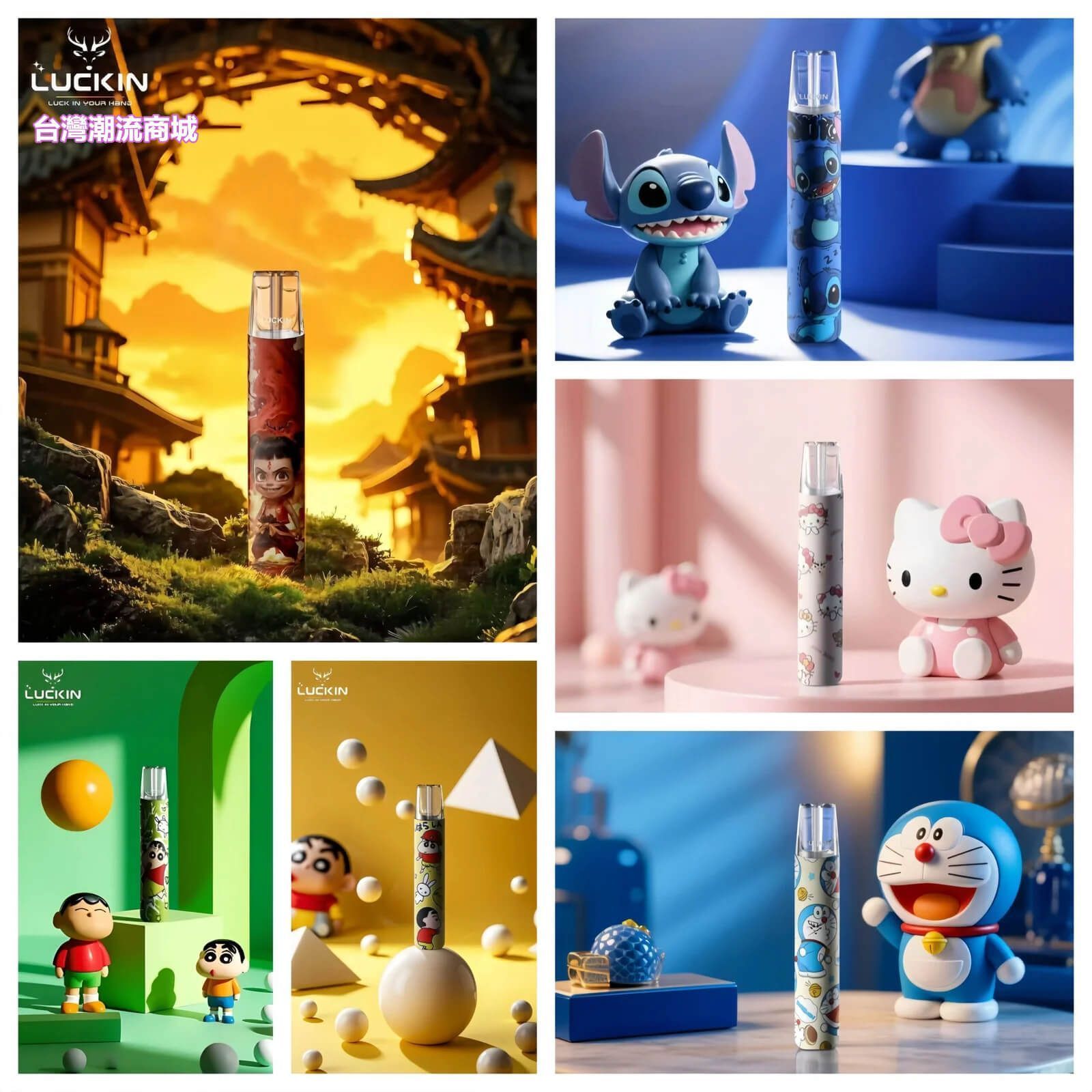 幸運LUCKIN推出的限量版卡通煙桿,專為一代煙彈設計,擁有獨特的卡通造型,讓吸煙過程更具趣味性。此款煙桿的設計靈感來自於多個受歡迎的卡通角色,包括: